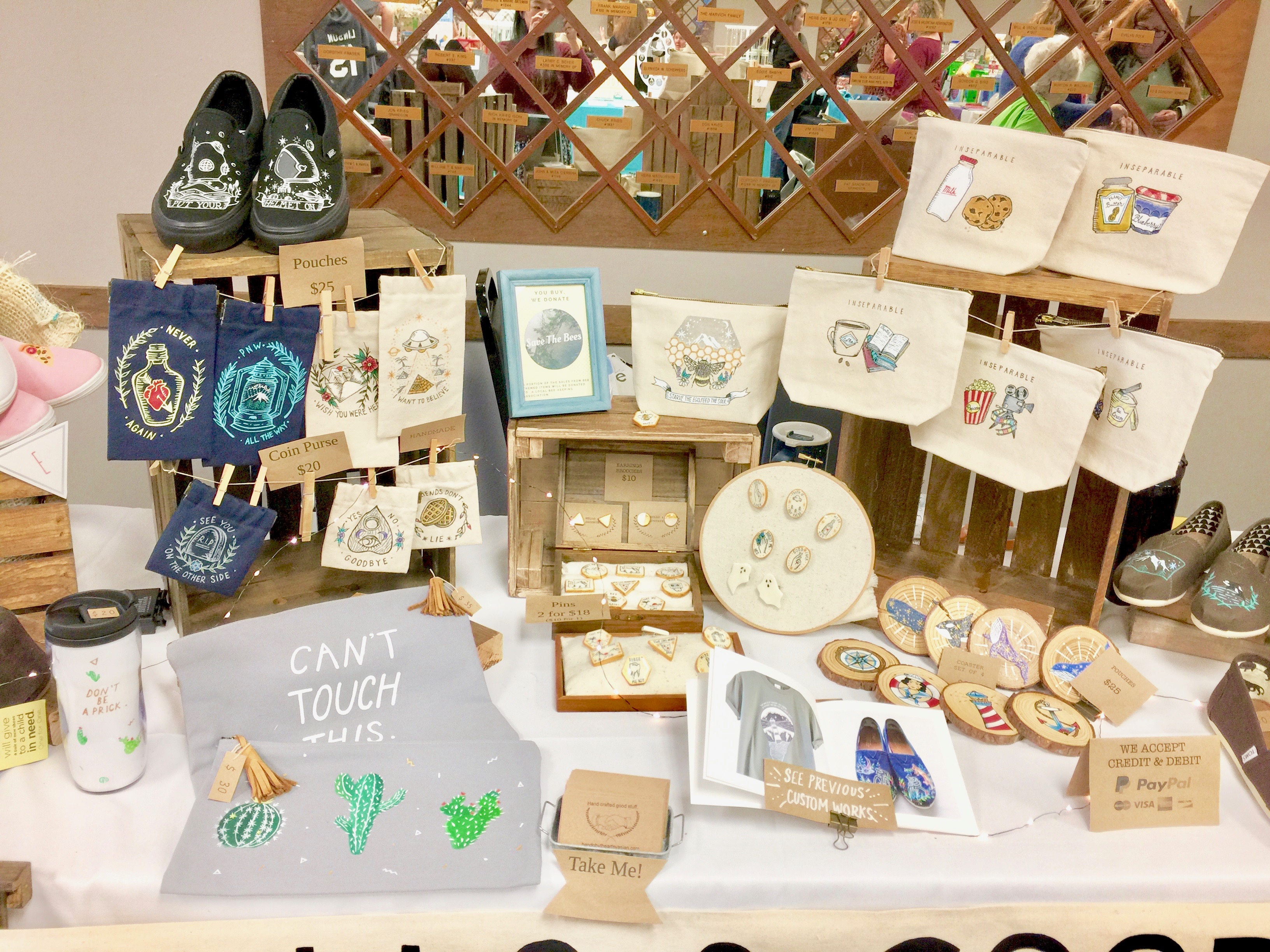 座っていると特に見えないらしく「こんなん自分で描けそうだわ〜」とか「手作り感出過ぎだよね〜」等という、非常に辛辣な発言を目の前でされる、と言う事態が発生wwまあ私の姿が見えていても言う人は言うのだと思いますが、正直