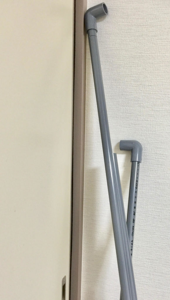 塩ビ菅はホームセンターで安く手に入る上、カットや組み立て等の加工も簡単に出来るので女性でも扱いやすいスーパー素材!