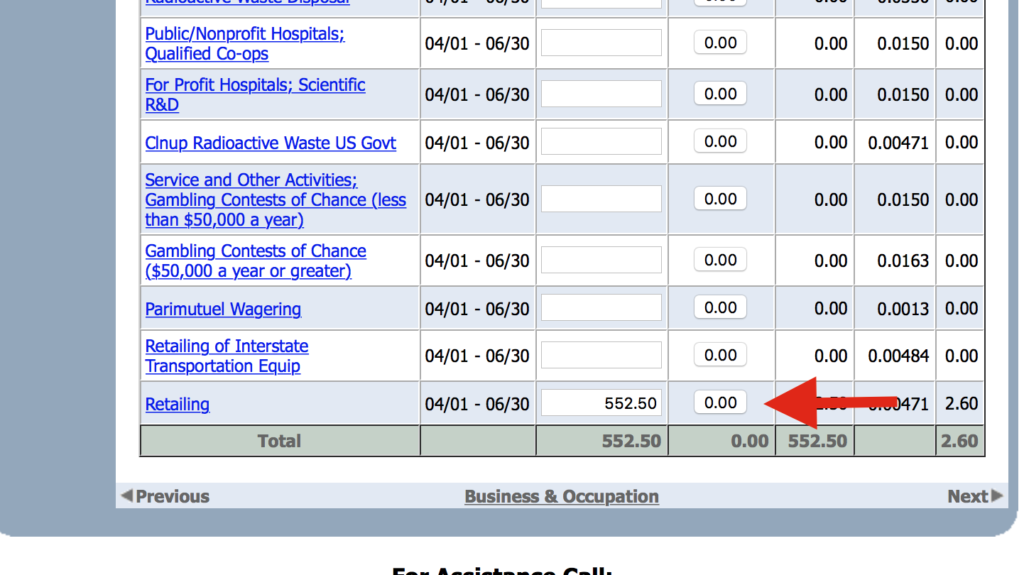 ”Gross Amount”(総額)のボックスに指定の期間4月1日〜6月30日の間分の売上額552.50を入力。