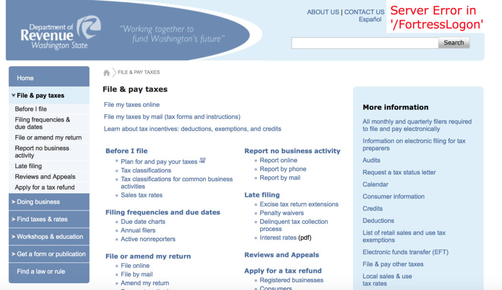 ワシントン州のDORのウェブサイトはこんな感じ。