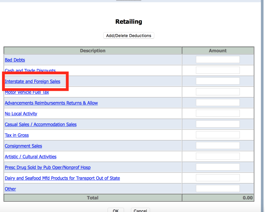 私が控除申請したいのは ”Interstate and Foreign Sales” と言う項目。