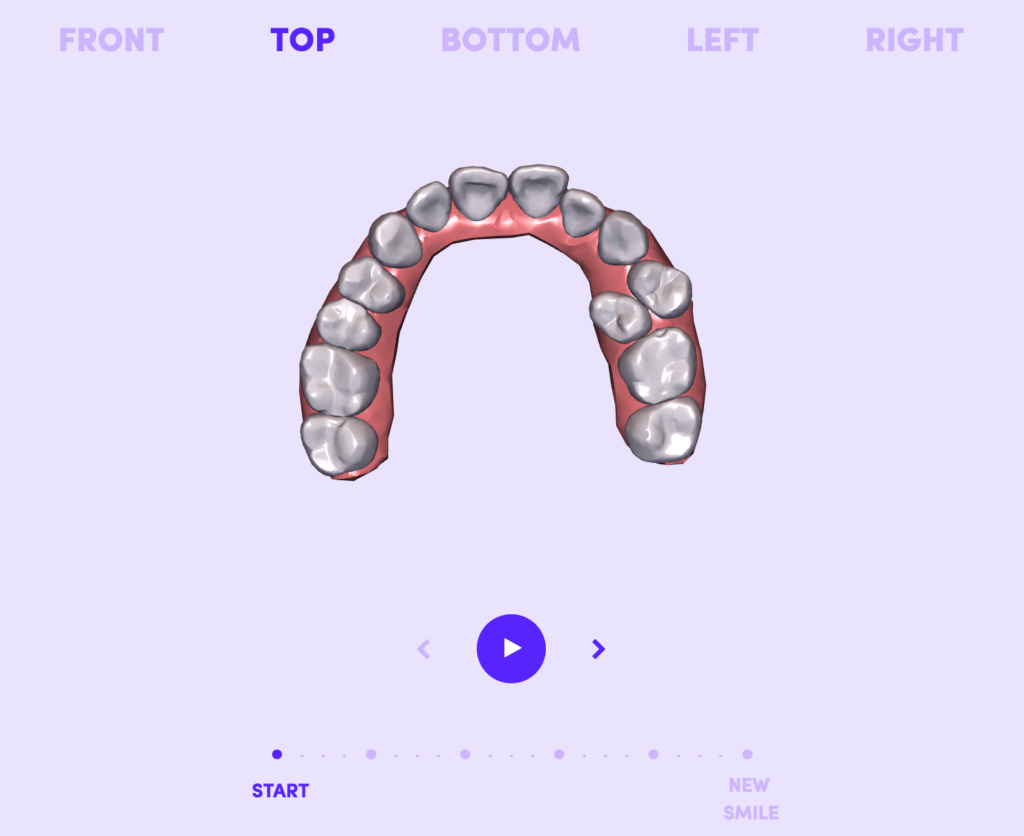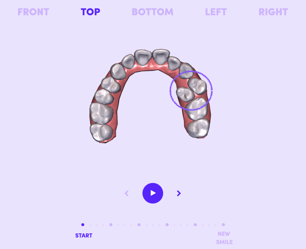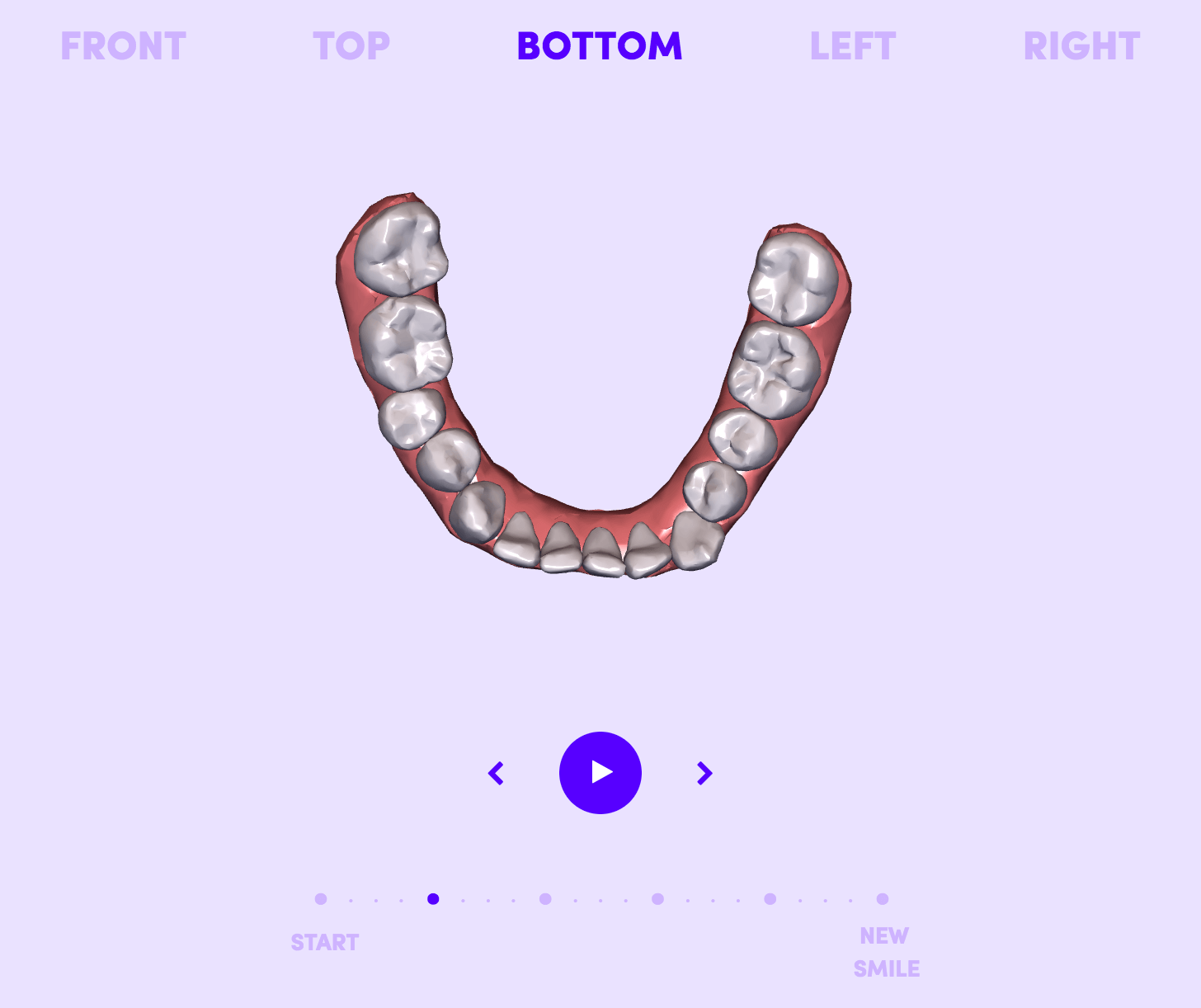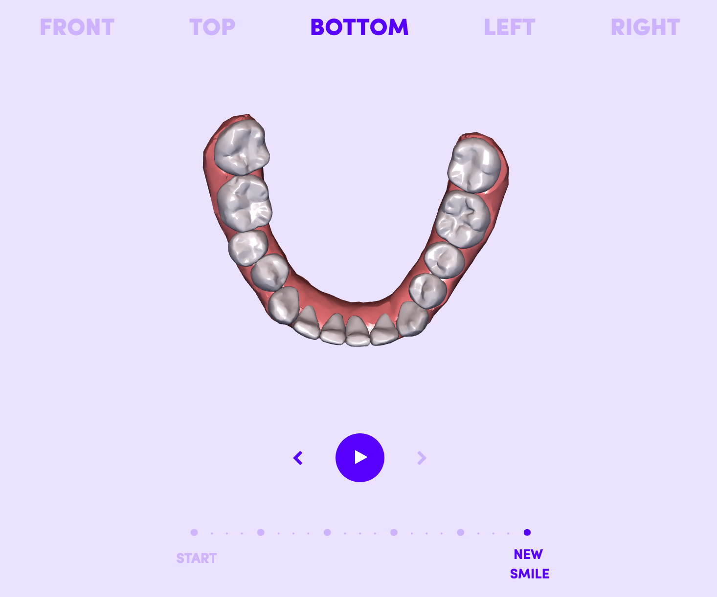 TOP/ BOTTOM / LEFT / RIGHT をそれぞれクリックする事で、違うアングルから歯並びを確認できます。