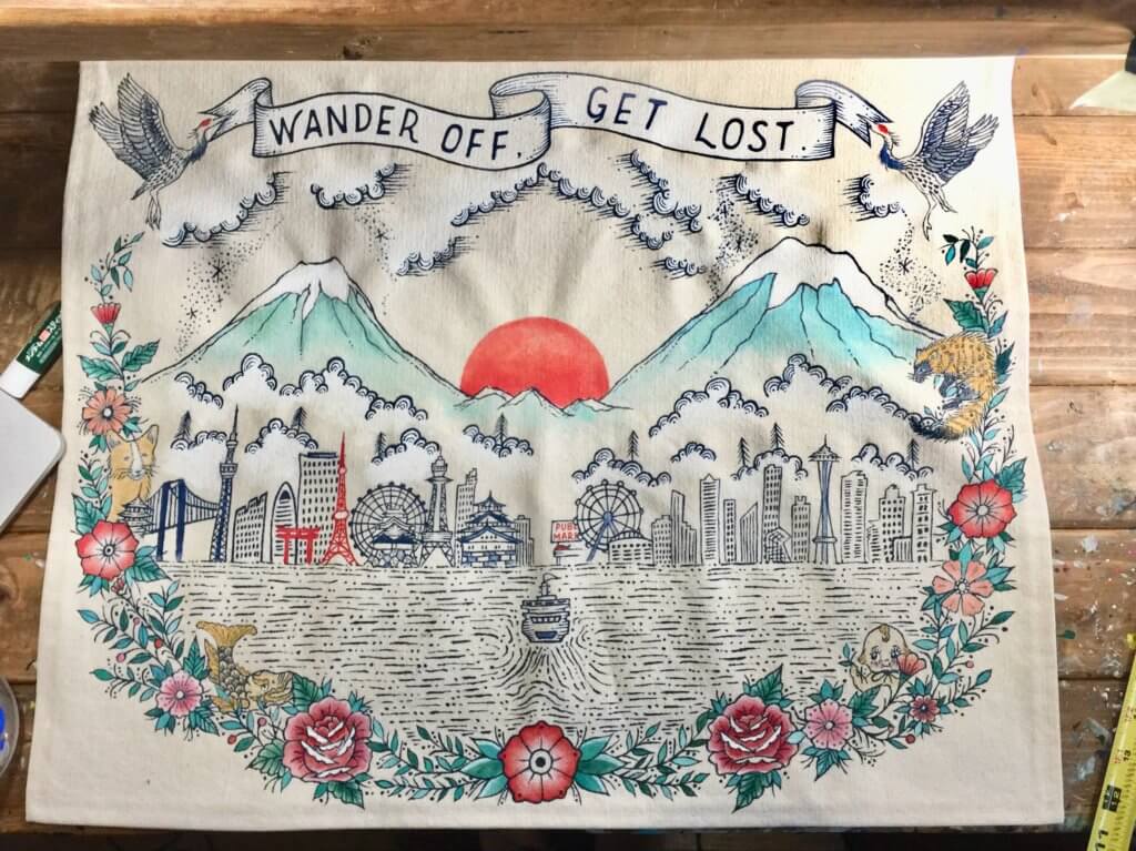 私がこの事を考えるきっかけになったのが、先日作成したカスタムオーダーのタペストリーを描いていた時のこと。