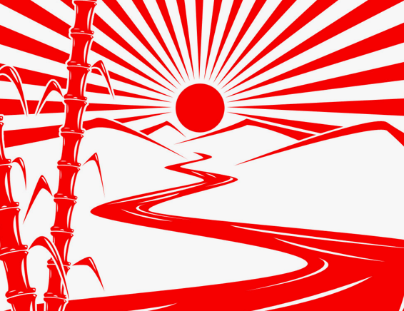 当初のデザインは放射状の線は無しで、山並みの間から太陽が覗いているデザインでした。