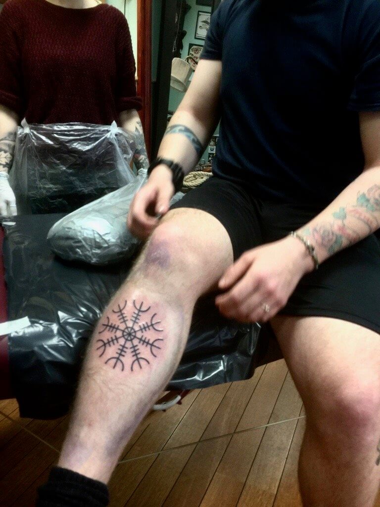 *エピソード内で夫が「良く色んな人に雪の結晶だと勘違いされる」と言っている北欧発祥のVegvisirと呼ばれるシンボル(ゲルマン人が使っていたルーン文字を組み合わせた図形)のタトゥーがこちら。