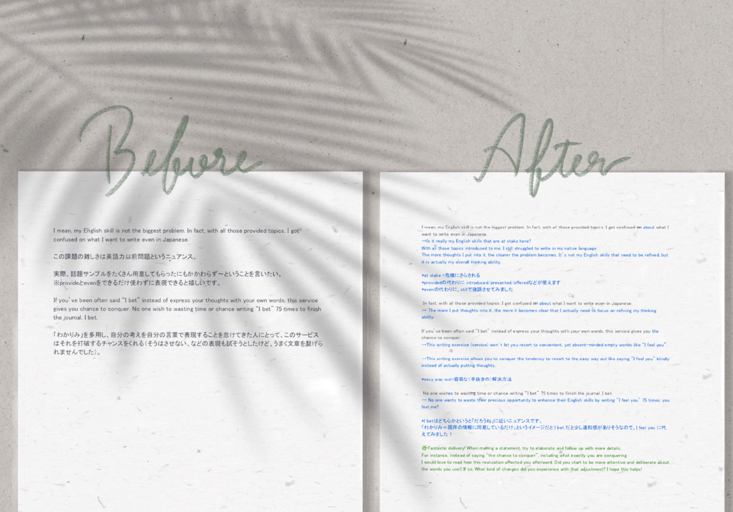 有料会員になると自然な言い回しや可読性などを加味した添削にアクセスできるようになりますが、無料版でも文法の誤りなど十分に修正してくれます!