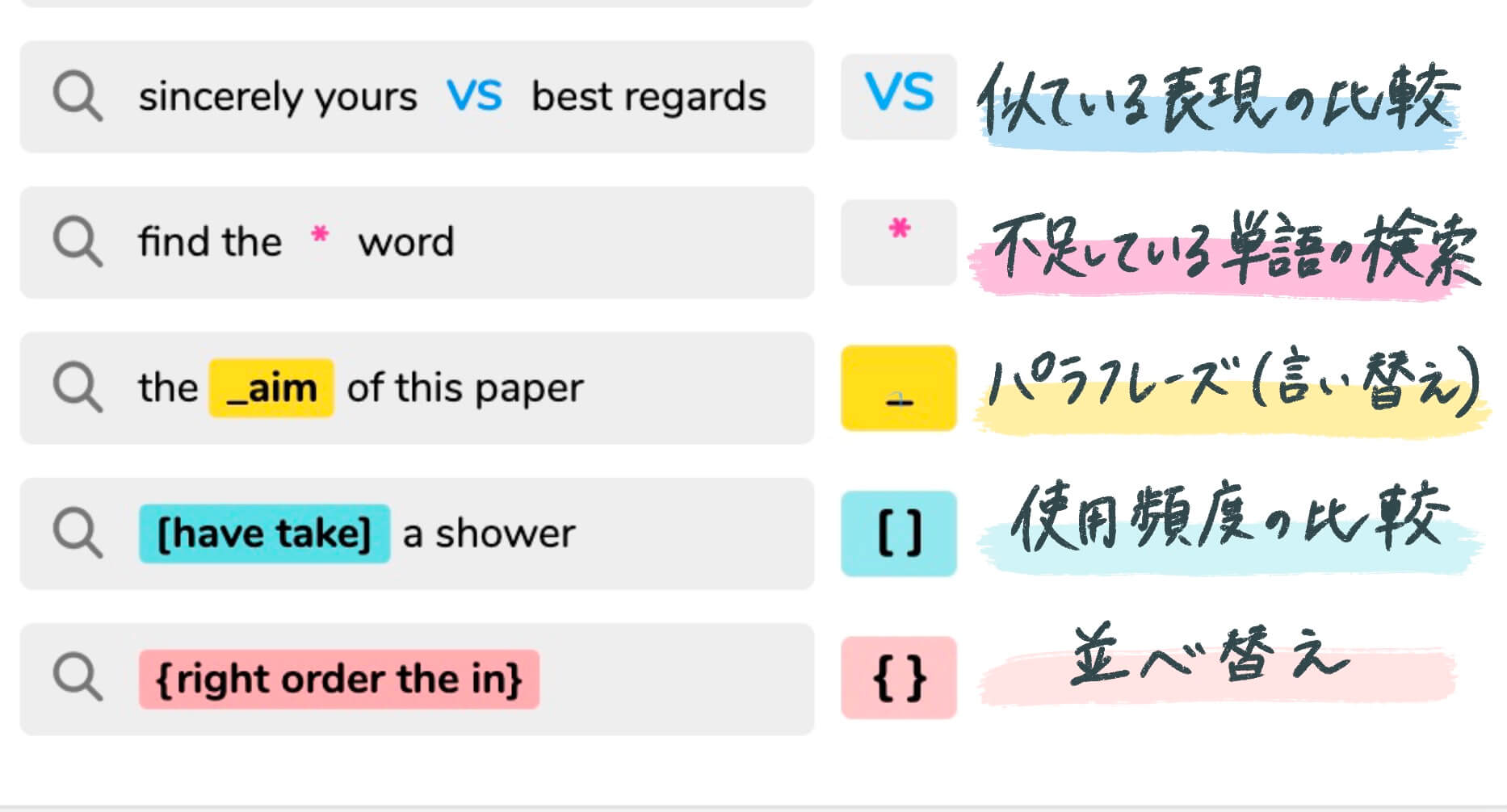 などの疑問は「似ている表現の比較」や「代替表現の検索」「並べ替え」など、Ludwigが用意してくれている簡単なコマンドで絞り込み検索すれば一発KOなのです!!