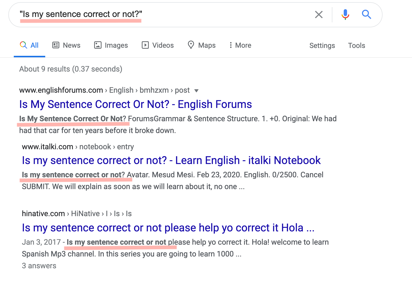 調べた表現を実際に使ってみたけど、本当にこれって自然なのかな?この名詞はどんな動詞を使えば良いの?などの疑問はこの三つを駆使すればセルフチェックできます👌