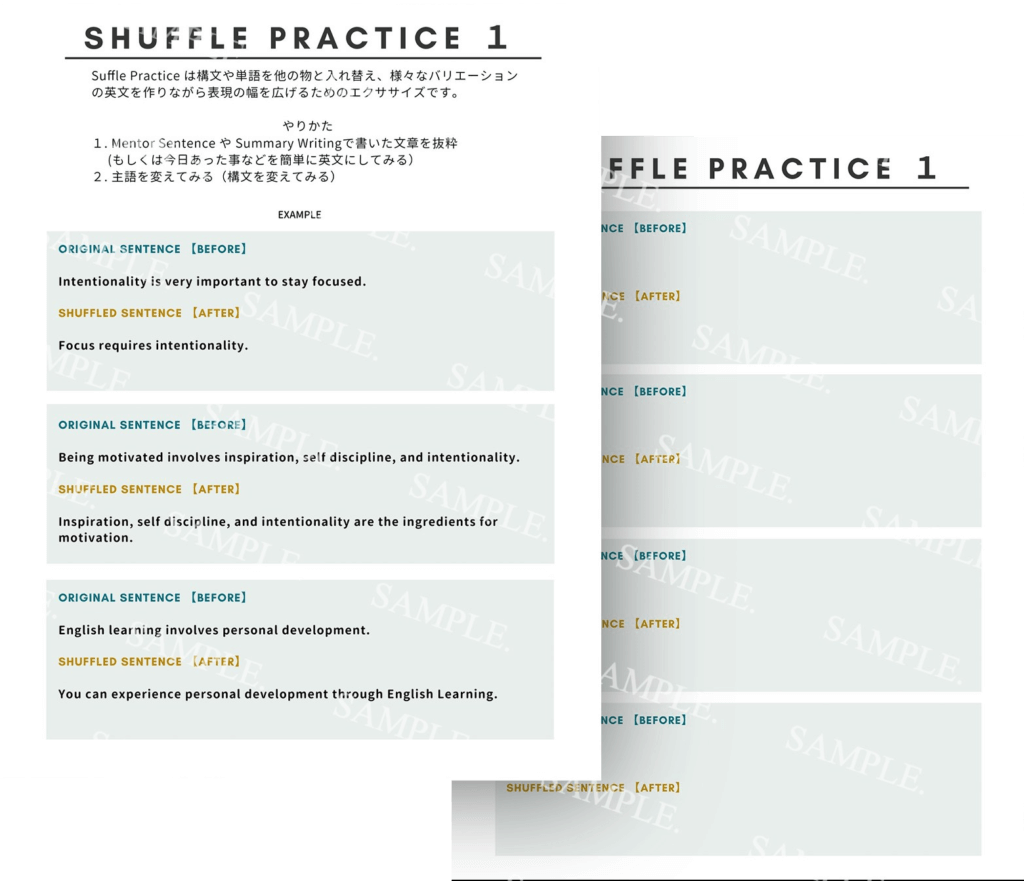 文章の単語や順序を入れ替え、様々な構文を作るエクササイズ - Shuffle Practice 2